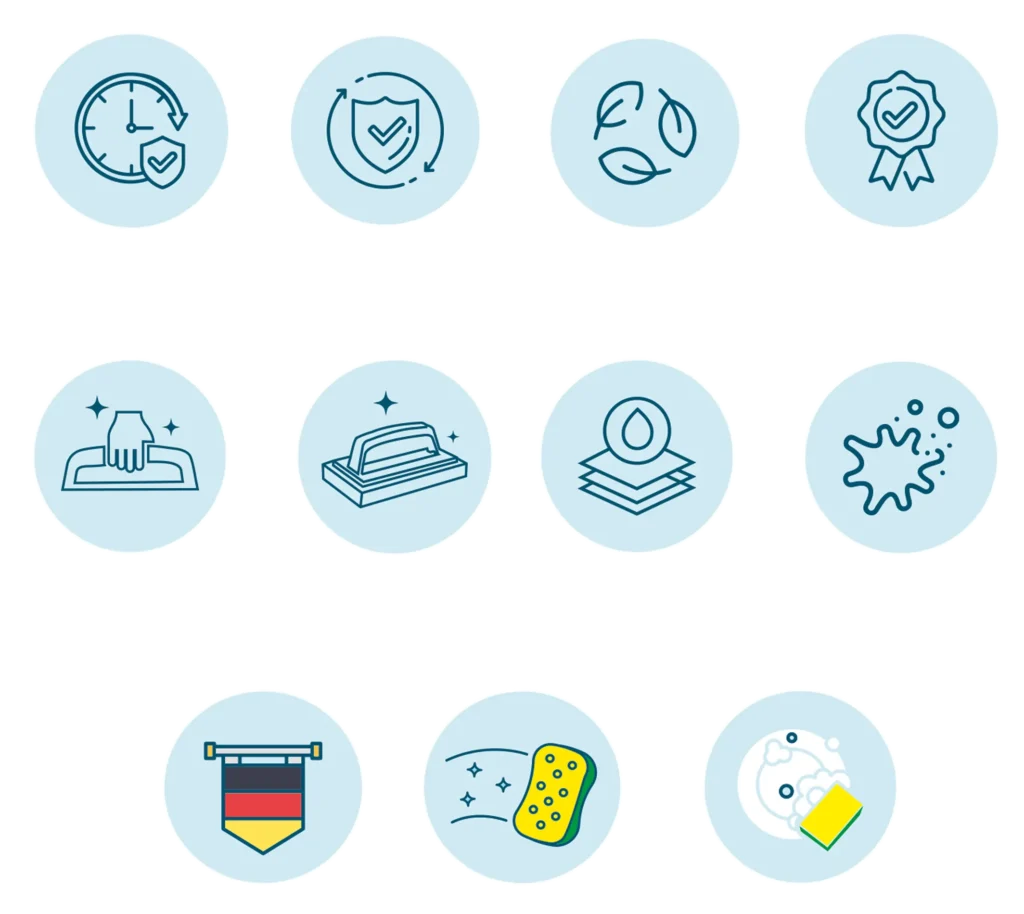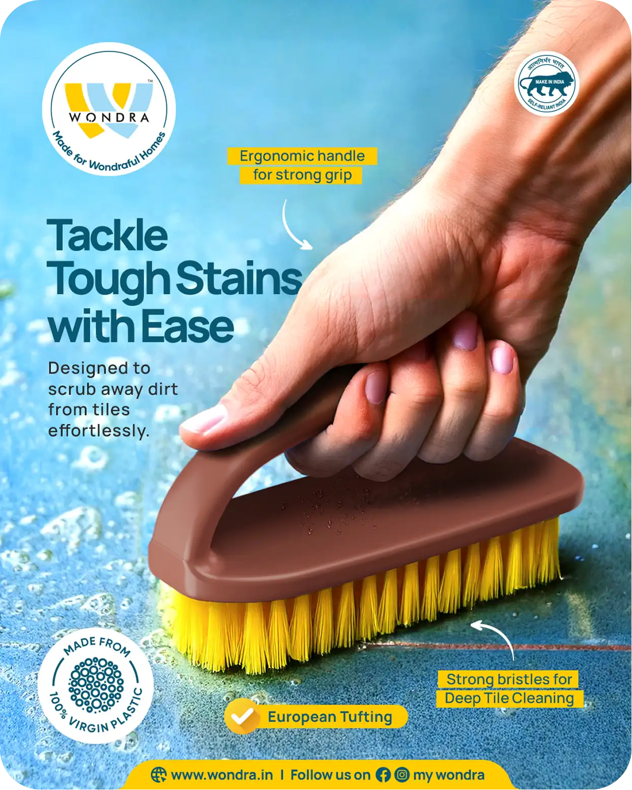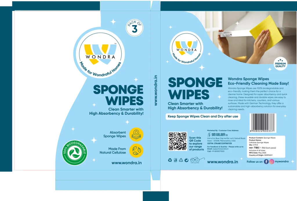 Wondra’s brand colours — yellow, light blue, and dark teal — were chosen to reflect the essence of modern, thoughtful cleaning. Yellow brings freshness and energy, light blue evokes clarity and hygiene, while dark teal adds depth and a premium feel. Together, they create a clean, confident, and approachable visual language that stands out across packaging and communication