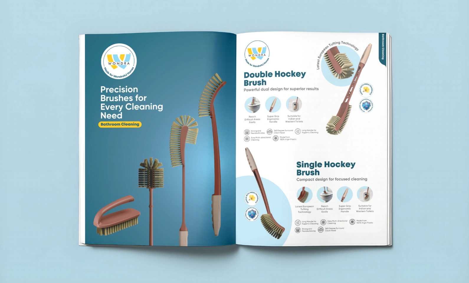 The product brochure clearly categorizes Wondra’s wide range of products, highlighting each item’s unique features, key benefits, and specific applications for easy understanding. Designed in a clean, minimal layout that reflects the brand language, it ensures quick navigation while maintaining a premium and professional look throughout.